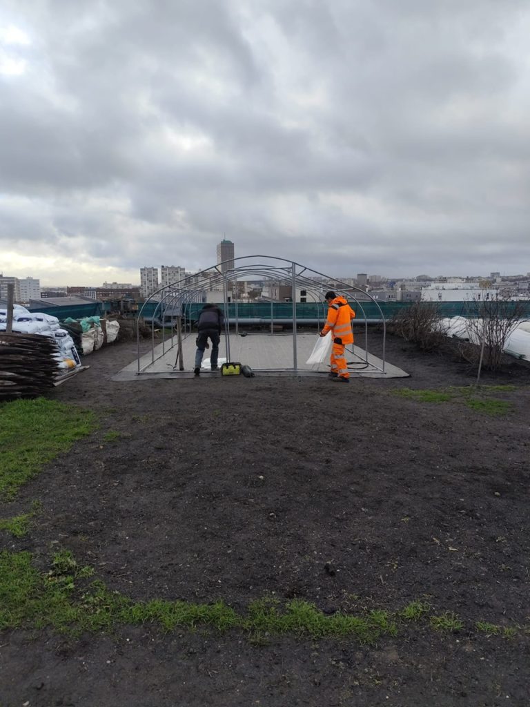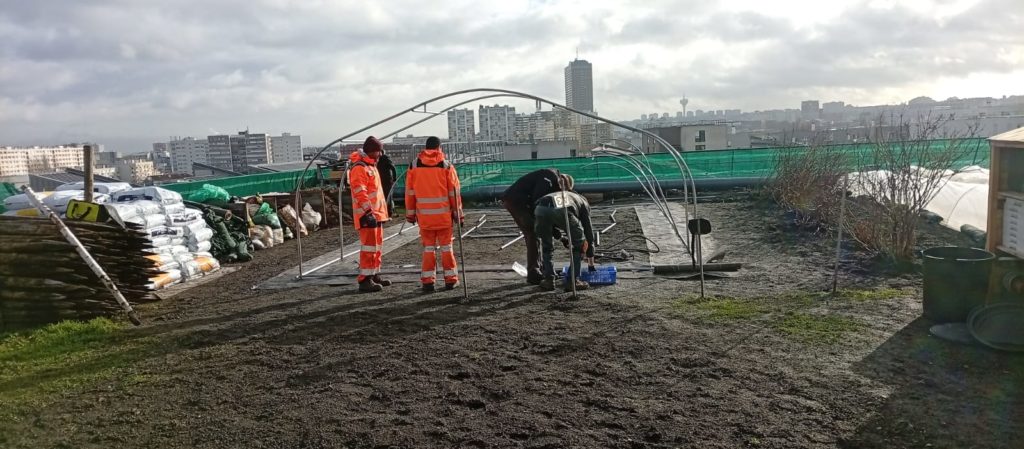 De nouvelles installations à CultiCime pour une meilleure production maraîchère le 11 février 202611 février 2026 par Marylene Grace au financement Agir in Seine-St-Denis, notre chantier d’insertion CultiCime a pu faire l’acquisition d’une serre et d’un brise-vent : deux installations que l’on attendait avec impatience. Elles permettront d’améliorer le rendement de notre production de légumes : en réduisant la perte liée aux intempéries, on augmentera notre production et ainsi le nombre de paniers solidaires remis aux bénéficiaires ! L’installation est en cours avec l’ensemble de salariés en parcours d’insertion à nos côtés. Rendez-vous au printemps pour découvrir combien la pousse sera foisonnante sous ces protections précieuses. « Agir in Seine-Saint-Denis » a financé ces installations À travers ce dispositif, le département de la Seine-Saint-Denis réaffirme son soutien au tissu associatif et plus largement aux structures de l’économie sociale et solidaire qui contribuent à la vitalité du territoire. CultiCime en fait partie et a remporté un financement pour des installations durables qui renforceront son rôle dans la solidarité locale – notamment la solidarité alimentaire. En effet, notre chantier CultiCime distribue une grande partie de sa production maraîchère en paniers solidaires pour les bénéficiaires de l’aide alimentaire à Aubervilliers. Augmenter la production de légumes, c’est augmenter le nombre de paniers offerts !