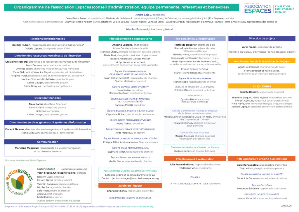 Organigramme de l’équipe permanente à date du 12/01/2026